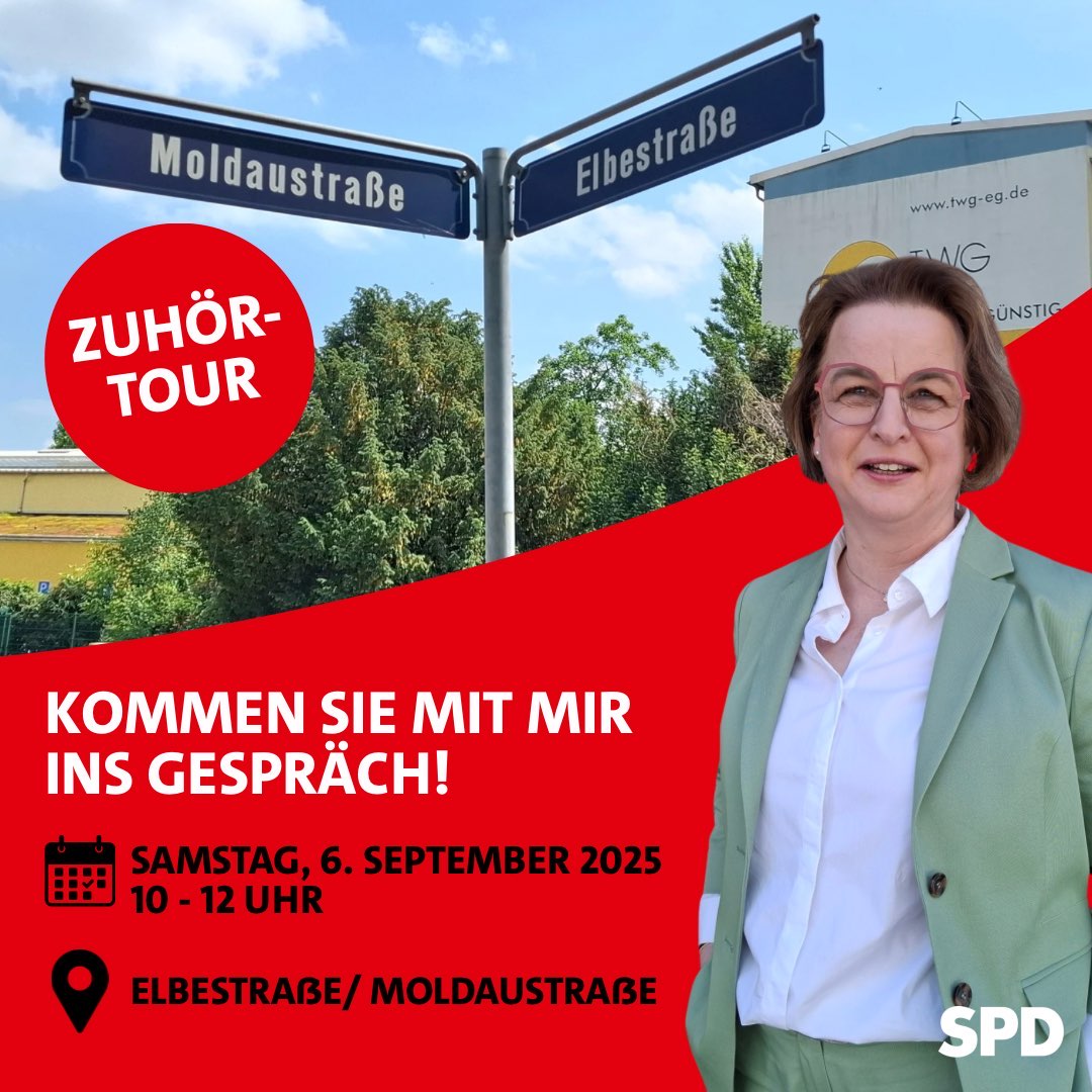 Der Wahlkampf zur Bürgermeister*in-Wahl hat viele Facetten. Claudia Eller-Funke ist seit einiger Zeit auf ihrer Zuhörtour in Teltow unterwegs. Der nächste Termin findet am 06. September 2025 von 10 – 12 Uhr an der Ecke Elbe-/Moldaustraße statt.